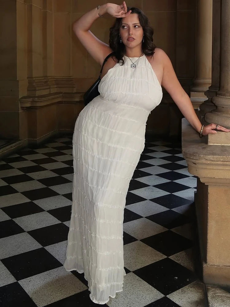 plus Halter Backless Sexy Maxi Dress For Women Spring Summer New Lace-up Sleeveless Pleated Beach Holiday Long Dress Elegant