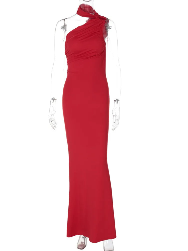 Halter Backless Sexy Maxi Dress Women Summer New Inclined Shoulder Sleeveless High Waist Bodycon Elegant Long Dress
