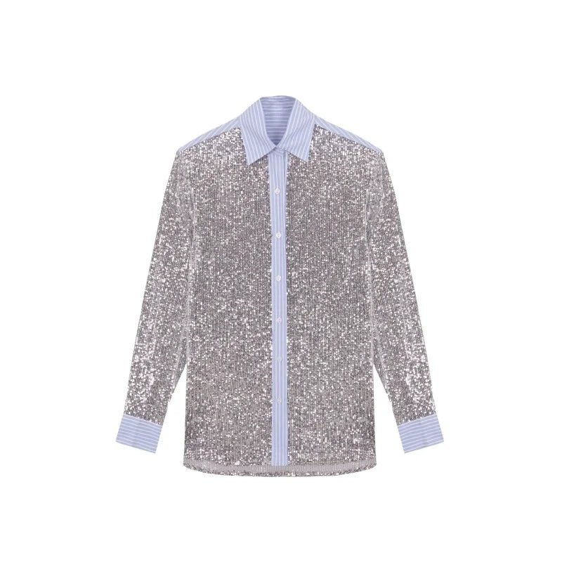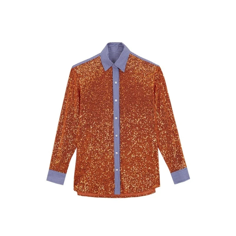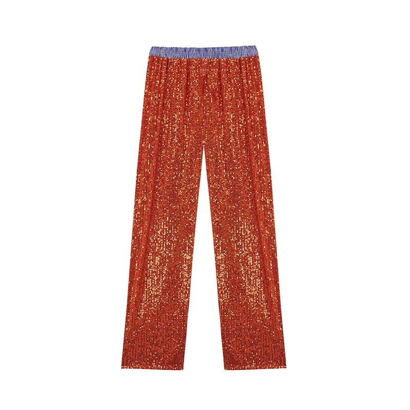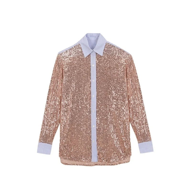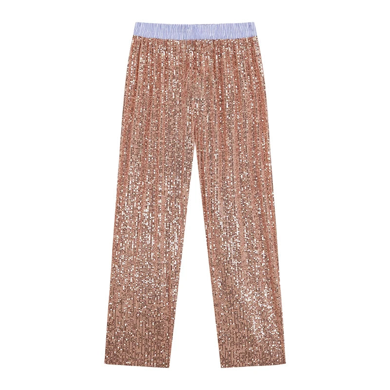 Sequin Loose Pants Two Piece Sets Women Patchwork Long Sleeve Shirt And Trouser Female Elegant Long Pants 2 Piece Sets