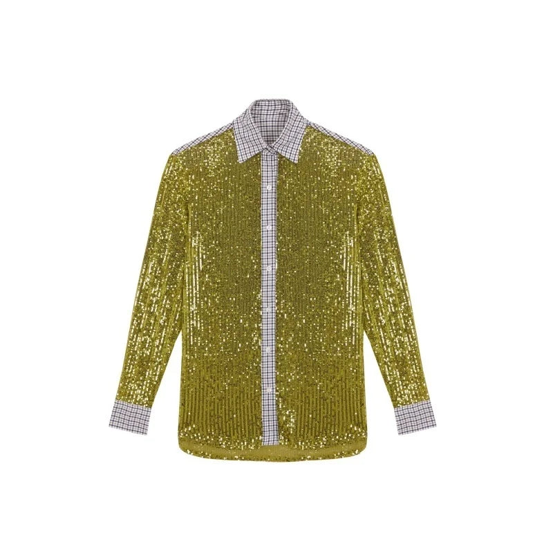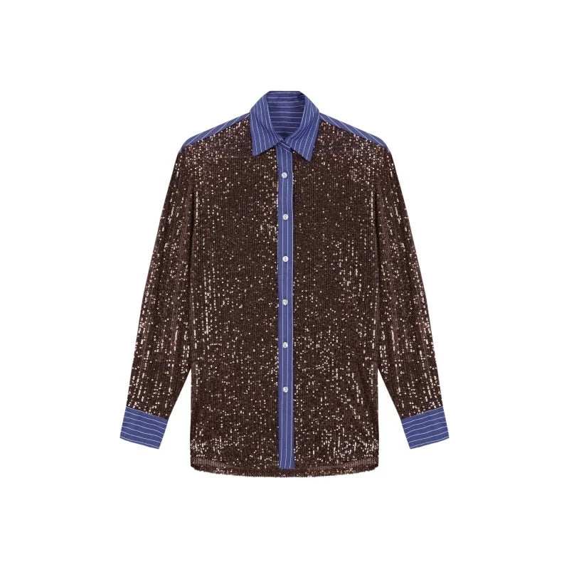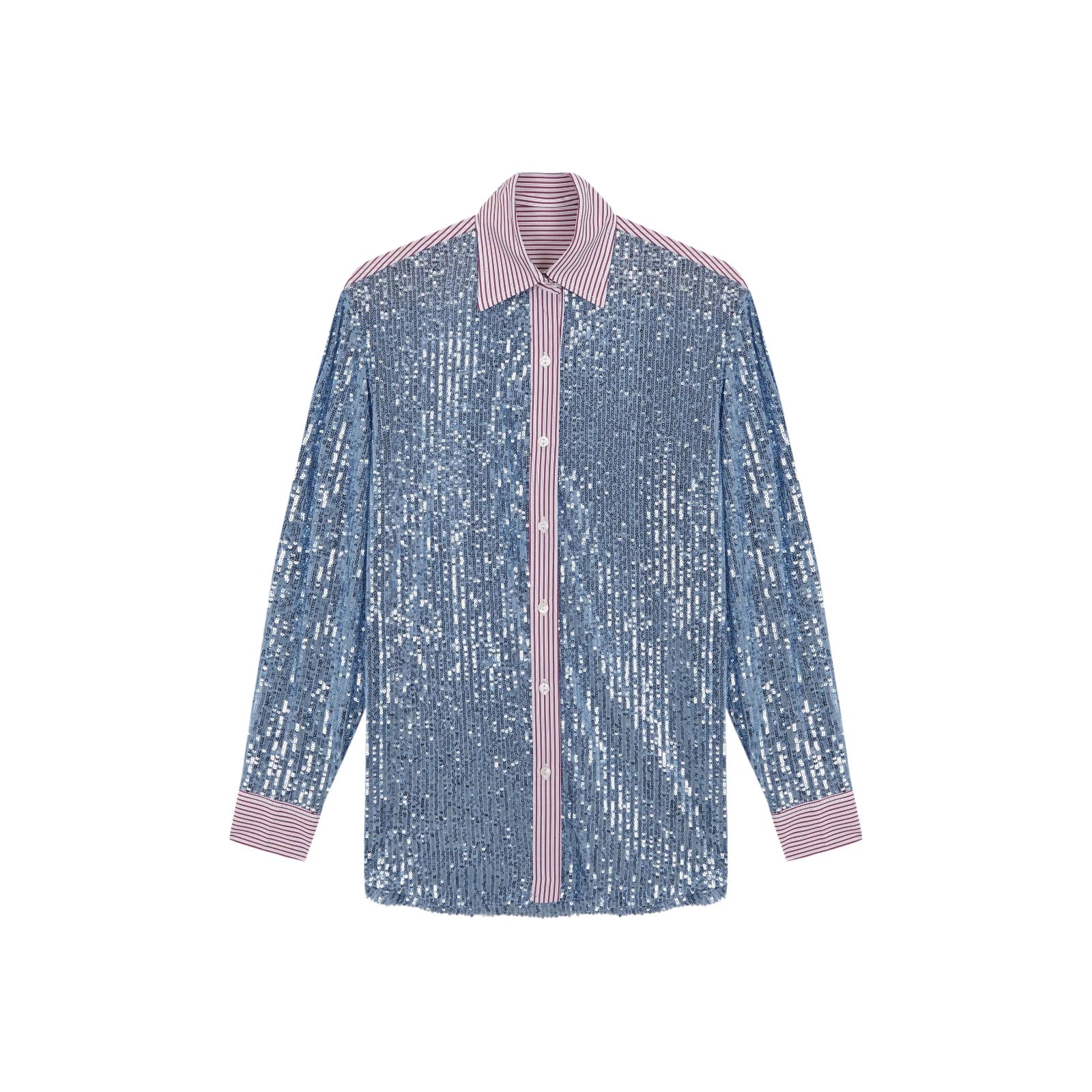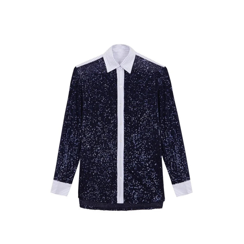 Sequin Loose Pants Two Piece Sets Women Patchwork Long Sleeve Shirt And Trouser Female Elegant Long Pants 2 Piece Sets
